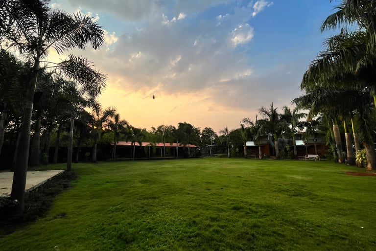 The spacious lawn at Nature Leap Resort, Igatpuri offers a beautiful open area surrounded by natural greenery, perfect for relaxation, recreation, and special gatherings. Designed to provide ample space and a peaceful atmosphere, the lawn is ideal for family time, group activities, and outdoor enjoyment.